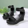 Модные женские босоножки на танкетке с открытым носком больших размеров, летние новые сандалии на платформе с ремешком на щиколотке для женщин, уличные повседневные сандалии на высоком каблуке