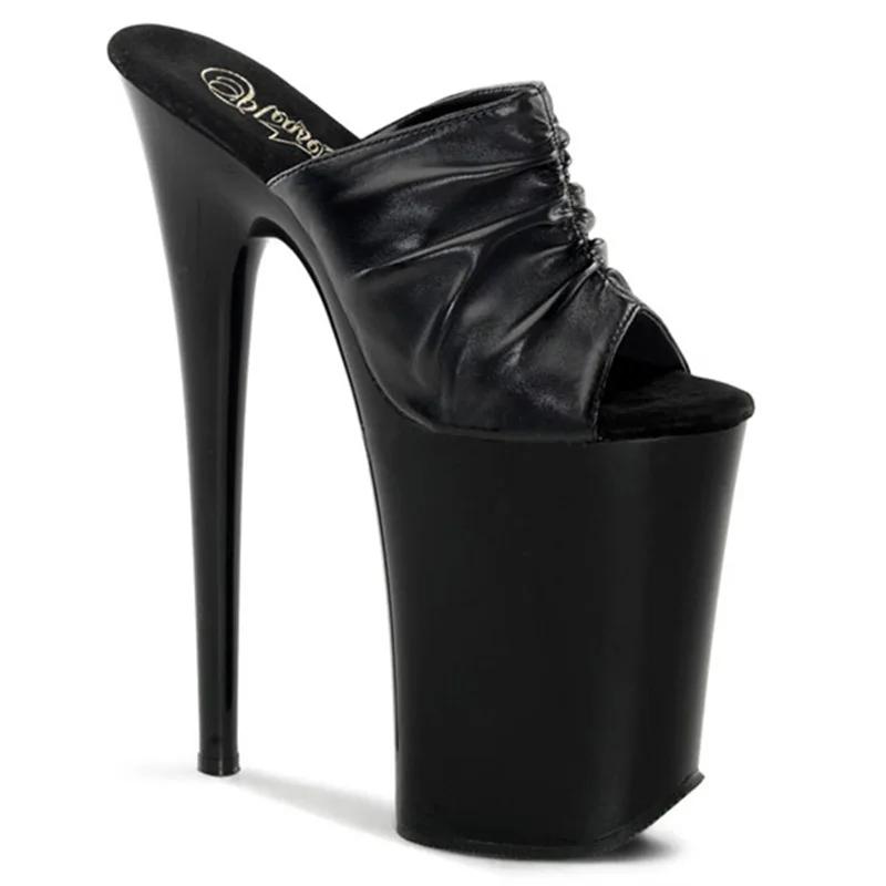 Модные шлепанцы на очень высоком каблуке Женские шлепанцы с открытой пяткой Женская мода летний стиль тонкий каблук платформа супер высокий каблук сандалии
