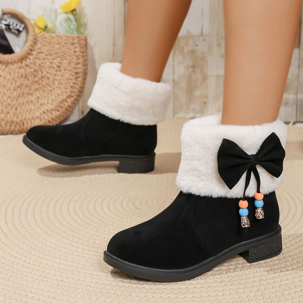 Модные зимние женские ботинки из хлопка на массивной подошве, теплые на плюшевой подкладке, с круглым носком, удобные повседневные хлопковые туфли для леди