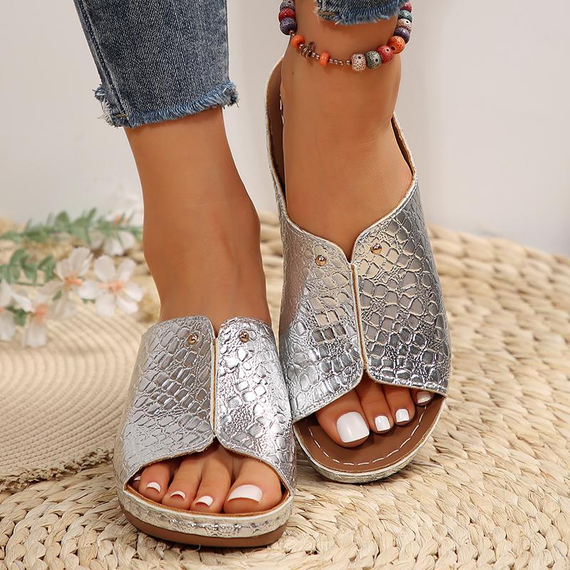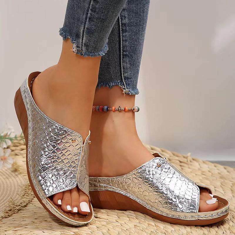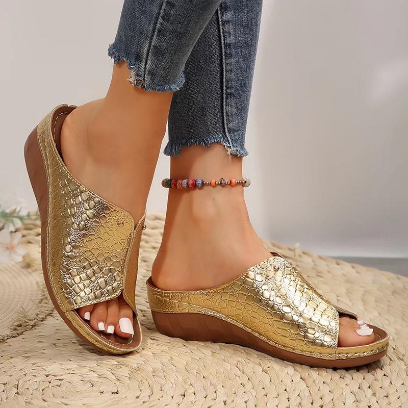 Мода 2025 Золотые Серебряные Босоножки на танкетке Женские Летние Легкие Босоножки на платформе с открытым носком Женские Большого размера Толстая подошва Обувь гладиаторы