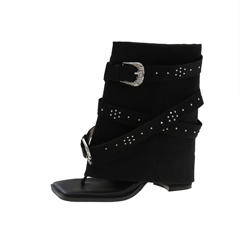 Модная новая обувь на массивном каблуке Женские современные ботильоны 2025 Модная обувь с заклепками Женские сандалии Ботинки Обувь Женские шлепанцы — купить товар онлайн с бесплатной доставкой по всему миру!