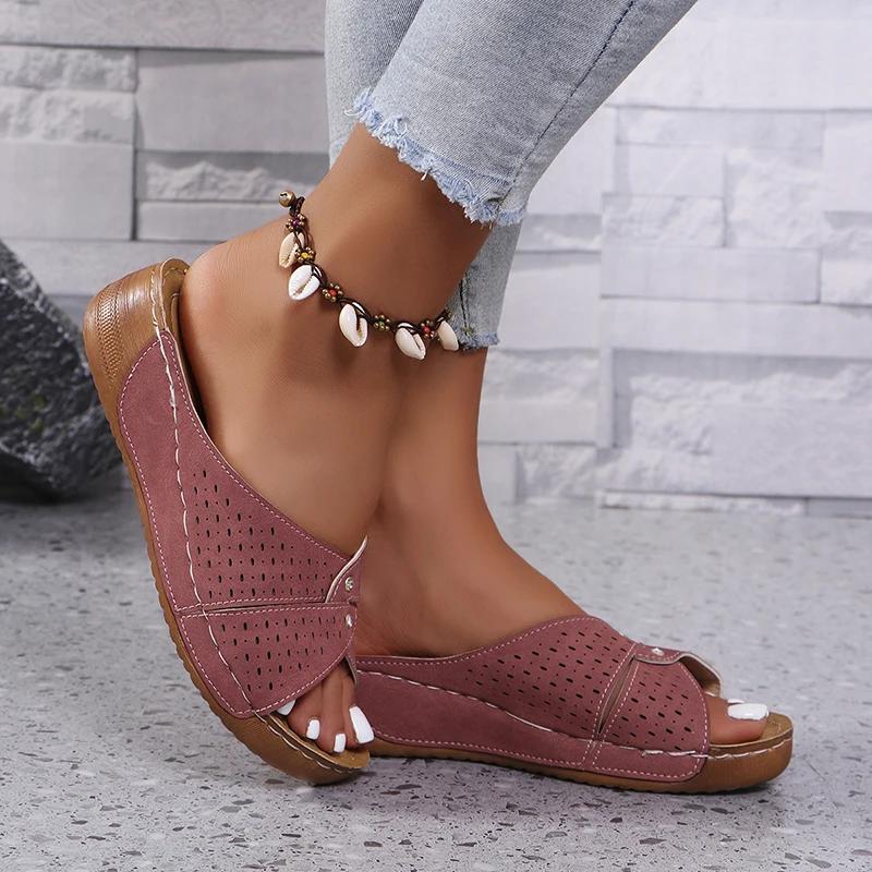 Мода Мода Платформенные шлепанцы с перекрестными ремешками Женские Летние Сандалии на среднем каблуке с открытым носком Женские Слайды 2025 Легкие Нескользящие Пляжные Вьетнамки