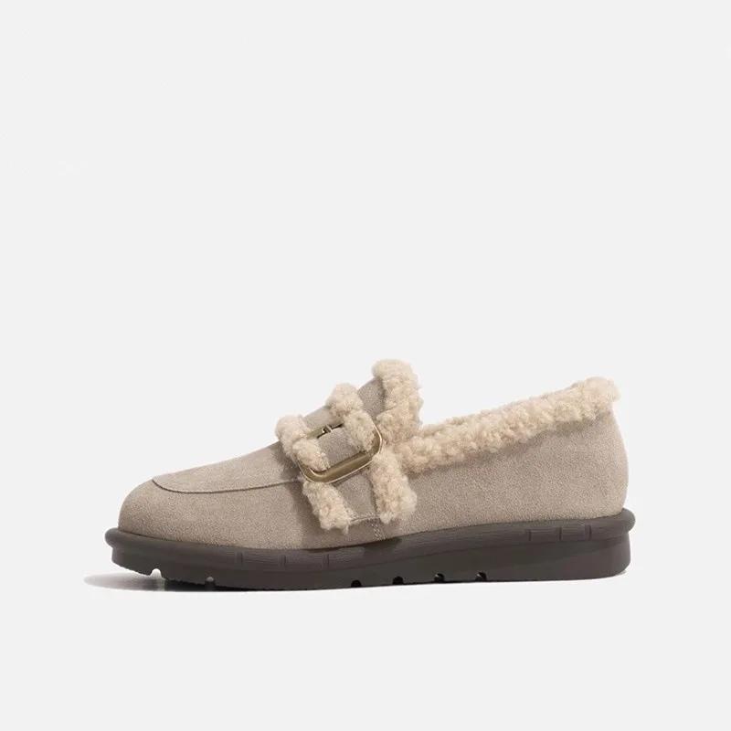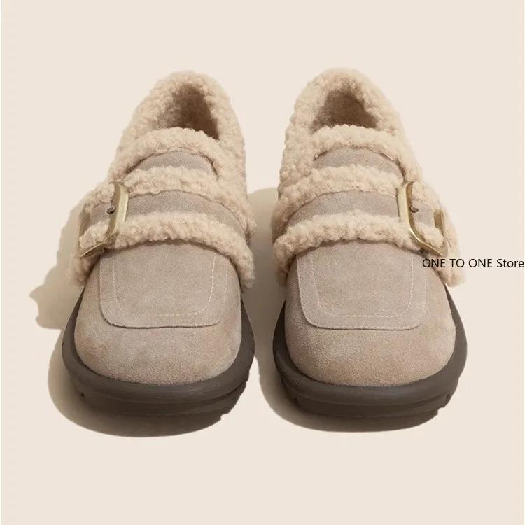 Модные женские мокасины с круглым носком на меху, женские туфли на платформе, зимние туфли на толстой подошве, новое платье, римские флоковые ботинки до середины голени, сплошные зимние ботинки, базовые, средние