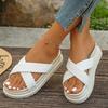 Модные ретро плетеные кожаные шлепанцы женские летние на среднем каблуке с толстой подошвой сандалии для леди повседневные пляжные нескользящие плоские шлепанцы Mujer