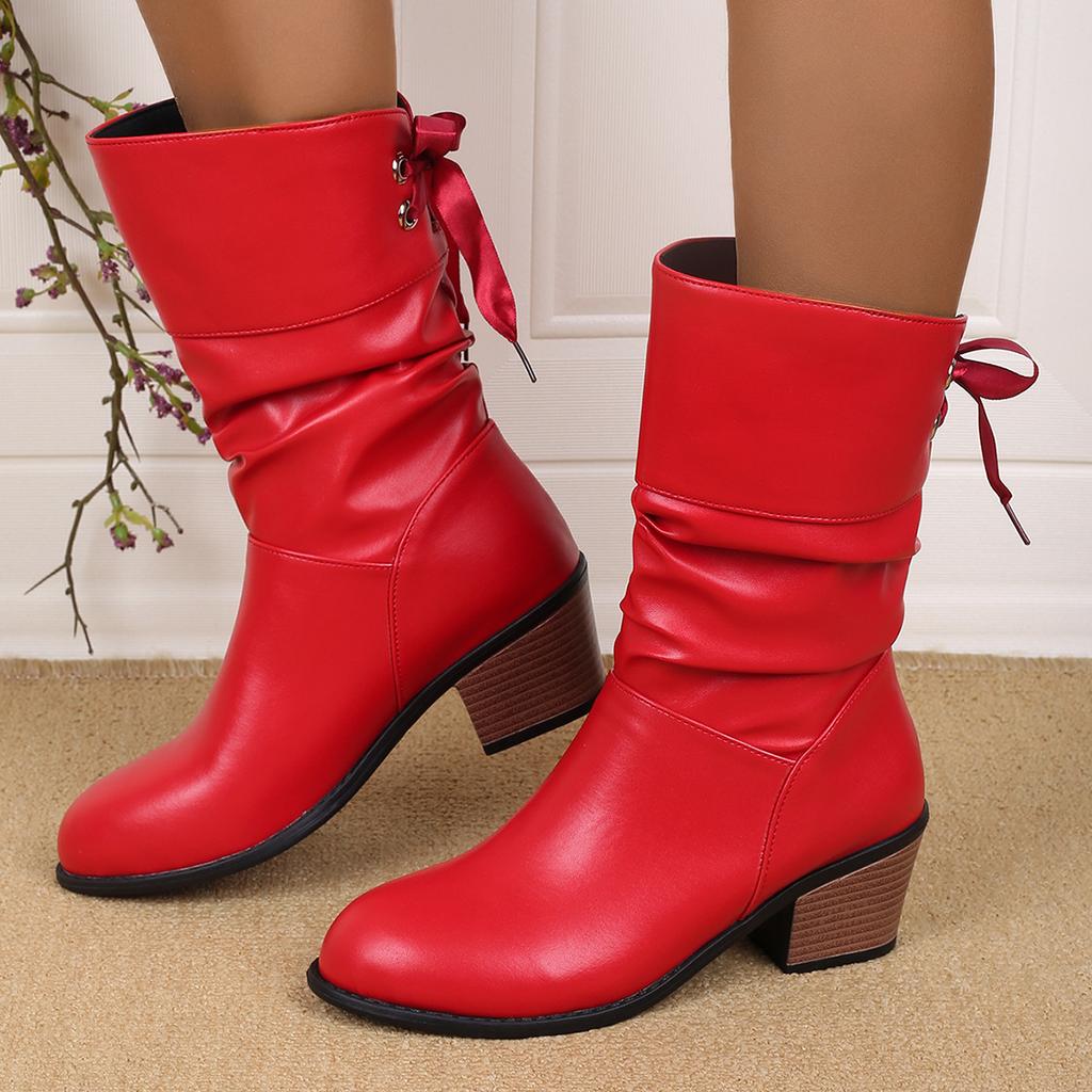 Модные женские современные ботинки, осенние повседневные ботинки до середины голени со шнуровкой сзади, модные плиссированные ботинки из искусственной кожи на низком каблуке, женские туфли больших размеров