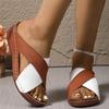 Модные летние кожаные шлепанцы на танкетке для женщин 2025 Нескользящие шлепанцы на платформе с перекрестными ремешками Женские шлепанцы с мягкой подошвой больших размеров