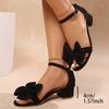 Fashion Fashion Ankle Strap Bowknot Sandals Women 2025 Summer Open Toe Square Heel Sandles Woman Cover Heels Plus Size Sandalias Mujer