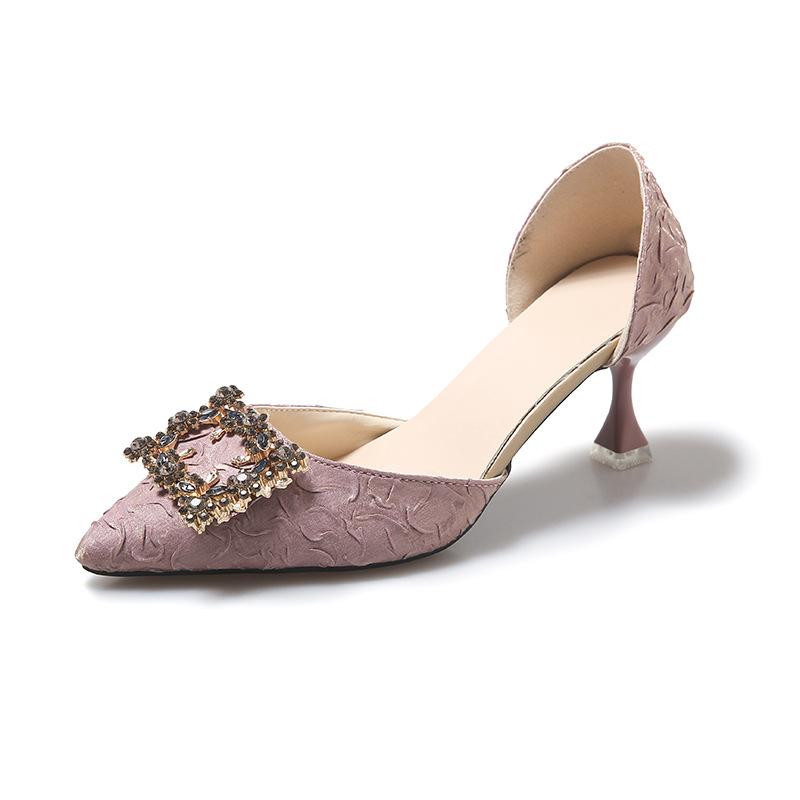 Модные женские туфли-лодочки на высоком каблуке 6 см/9 см, с острым носком, на шпильке, на низком каблуке, женская обувь, обувь для офисной леди, туфли со стразами, розовые каблуки, свадебные