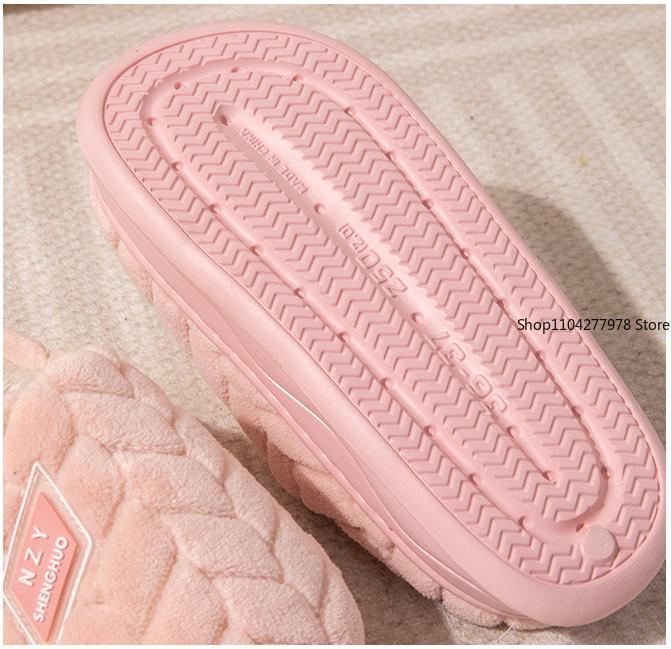 Модные мужские домашние тапочки Пушистые клетчатые Уютные ЭВА С эффектом памяти Легкие Повседневная обувь Зимние Теплые Плюшевые Нескользящие Женские тапочки Размер 45