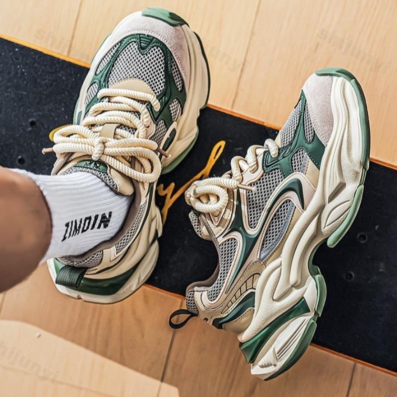 Модные сетчатые дышащие кроссовки с низкой посадкой, на толстой подошве, нишевого дизайна для мужчин, тренд осенней моды 2025, универсальные, удобные кроссовки на платформе