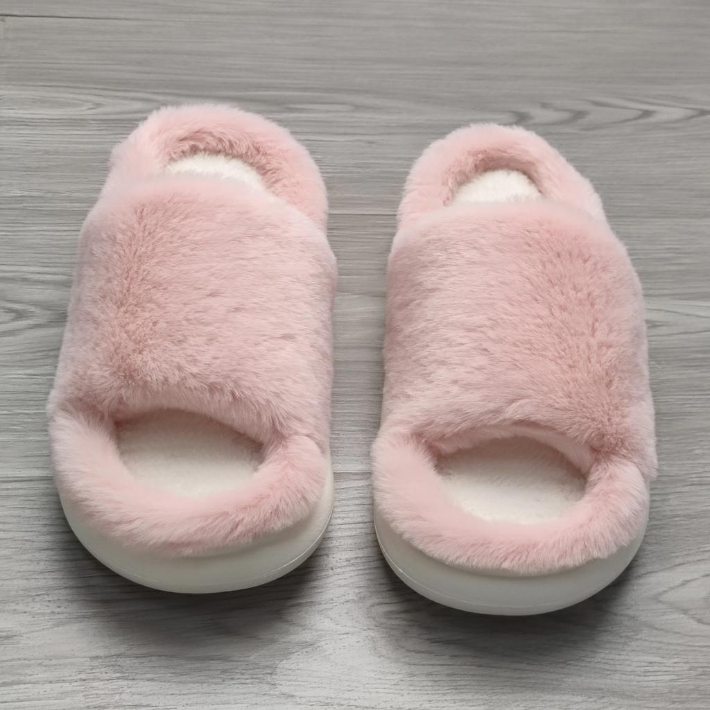 Модные тапочки из искусственного меха, сохраняющие тепло, женские зимние с открытым носком, на толстой подошве, плюшевые тапочки, женские удобные мягкие нескользящие домашние хлопковые туфли