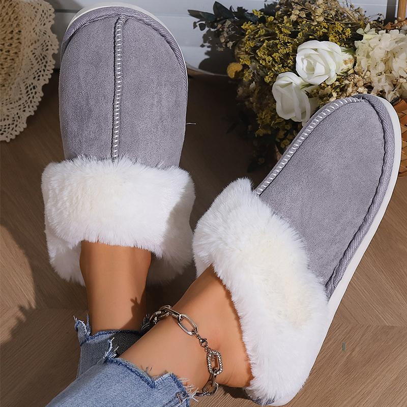 Модные зимние тапочки-шлепанцы с мехом, нескользящие, женские, из искусственного меха, теплые плюшевые тапочки, женские домашние тапочки смешанных цветов с круглым носком, хлопковые шлепанцы, женские