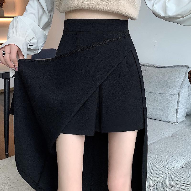 2024 Юбка миди А-силуэта с завышенной талией, черная, с разрезом