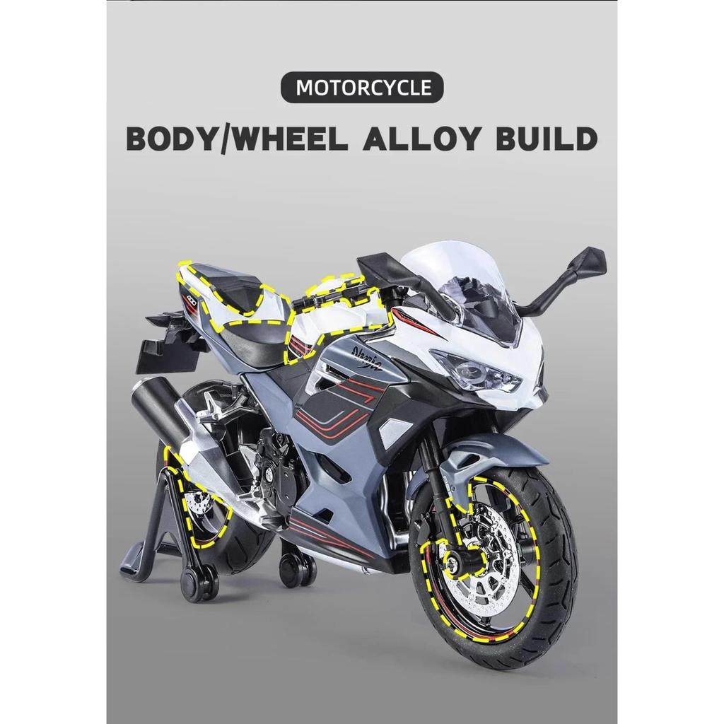 1/12 Kawasaki Ninja 400 Сплав Литой Модель Мотоцикла Коллекция Транспортных Средств Звук и Свет Внедорожный Автоцикл Игрушечная Модель Автомобиля