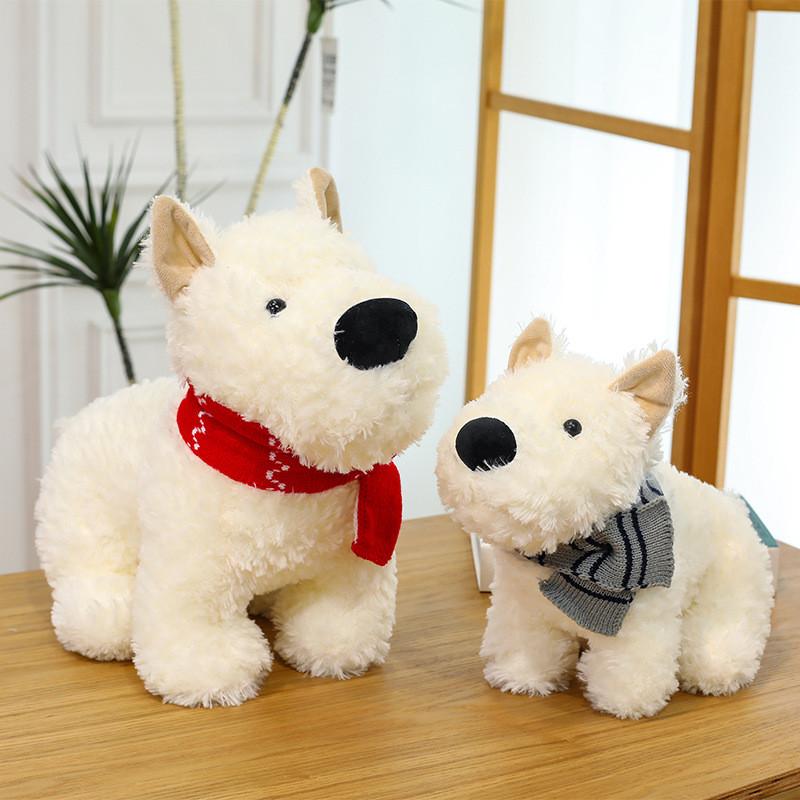 Cartoon Doll Dog Plush Animal Wearing Scarf High Elasticity Pp Filling Cotton