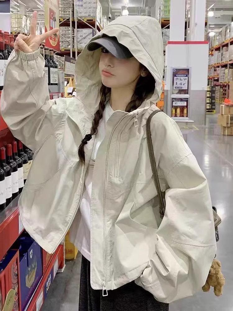 Встречайте смену сезонов в этой стильной куртке-ветровке с капюшоном, созданной для женщин, которые ценят и комфорт, и моду.. Эта куртка, изготовленная из прочного спандекса, имеет однотонный узор и среднюю толщину, что делает ее идеальной для ветреных дней весны и осени.. Его свободный крой обеспечивает свободу движений, а длинные рукава обеспечивают дополнительное покрытие и тепло.. Капюшон куртки добавляет дополнительный слой защиты от непредсказуемой погоды, сочетая практичность с современным стилем.