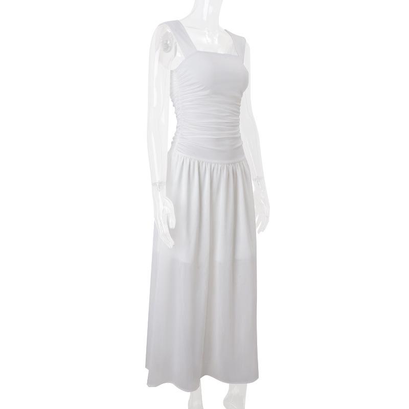 Почувствуйте элегантную летнюю атмосферу в этом потрясающем плиссированном сетчатом платье с квадратным вырезом.. Разработанный в европейско-американском стиле, он имеет тонкие бретельки-спагетти, которые добавляют нотку изысканности.. Это платье, полностью изготовленное из высококачественного полиэстера, обеспечивает легкое и дышащее ощущение, что делает его идеальным для мероприятий в теплую погоду.. Изысканный плиссированный дизайн и воздушная сетчатая ткань создают грациозный силуэт, делая его идеальным выбором как для дневных прогулок, так и для вечерних мероприятий.. Наслаждайтесь непринужденным стилем и комфортом весь сезон в этом шикарном и универсальном платье.