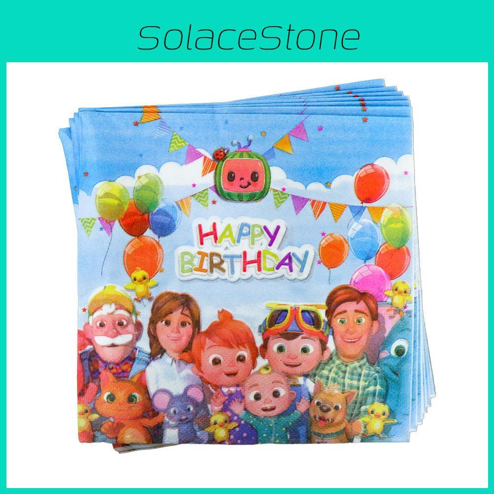 Этот одноразовый набор для вечеринки в стиле CoComelon включает бумажные тарелки, стаканы, салфетки и скатерти из прочного бумажного материала, предназначенные для украшения праздничного декора.. В набор входят тарелки, 20 салфеток, 10 стаканов и различные украшения, такие как воздушные шары, баннеры для универсального использования.