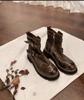 Ежегодные боевые ботинки Grape Mom в том же стиле~ Усадка после стирки, конская кожа, ремень с пряжкой, толстый каблук, ботинки-мартин до середины икры, женские, в стиле локомотива