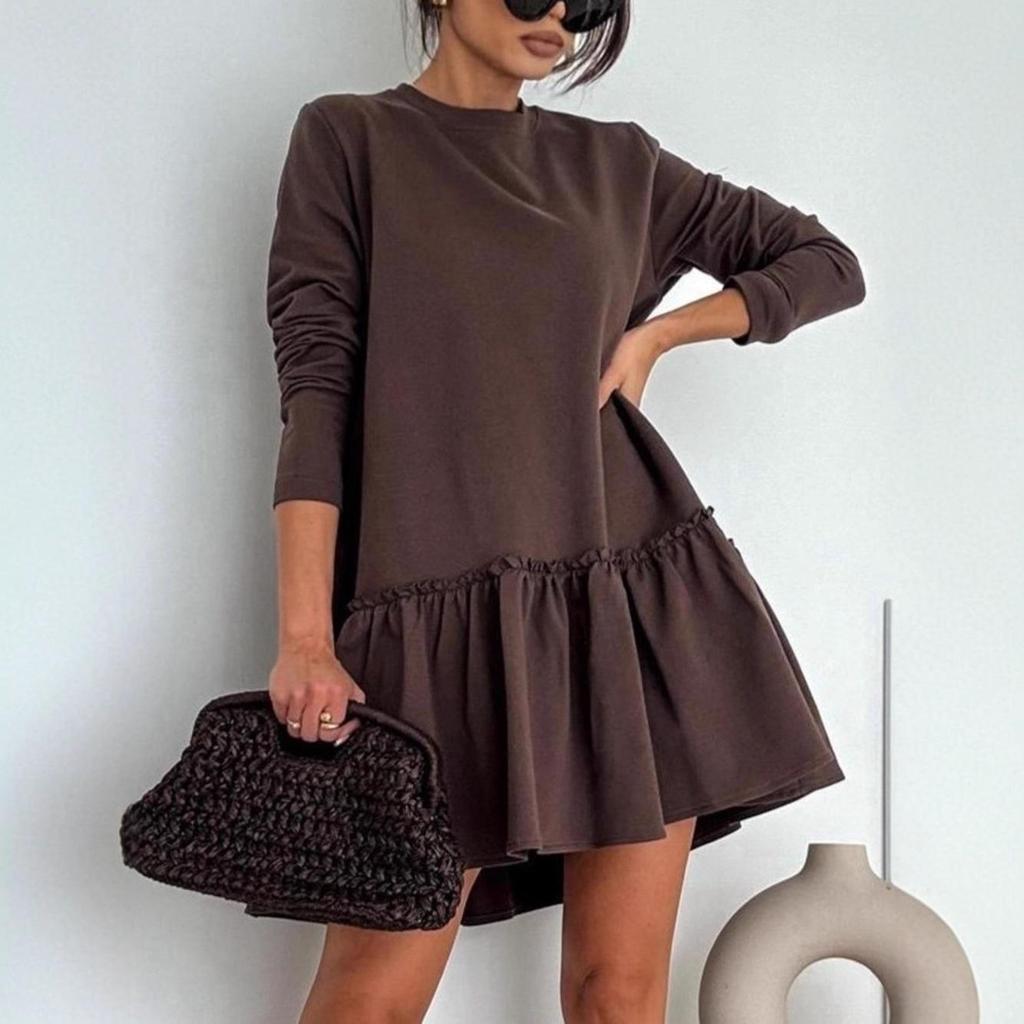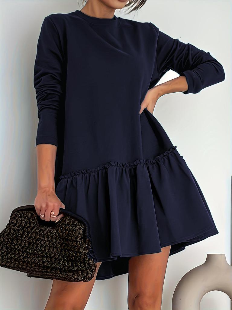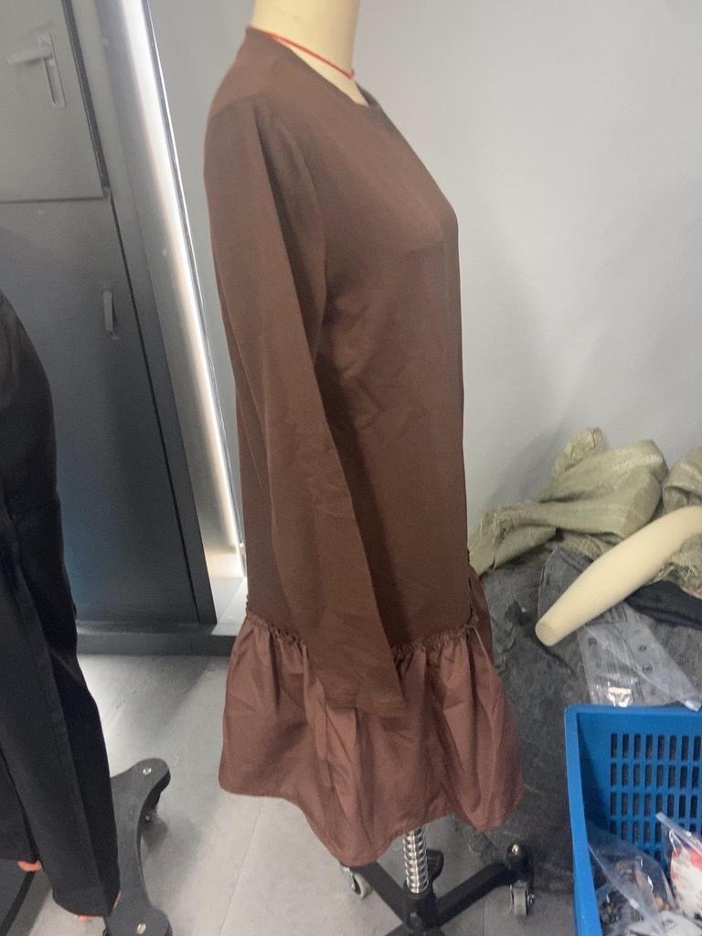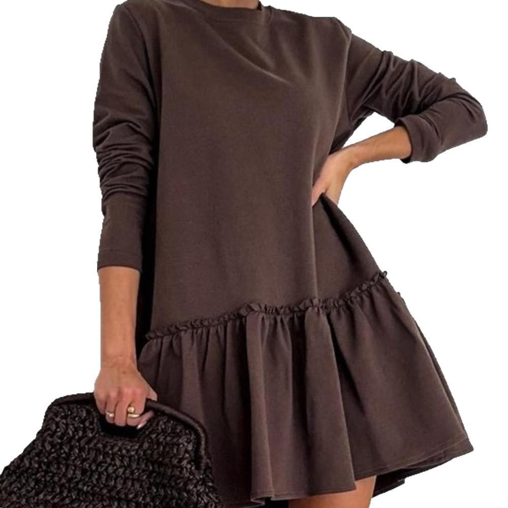 Элегантное европейское и американское плиссированное однотонное длинное платье с оборкой на круглом вырезе
