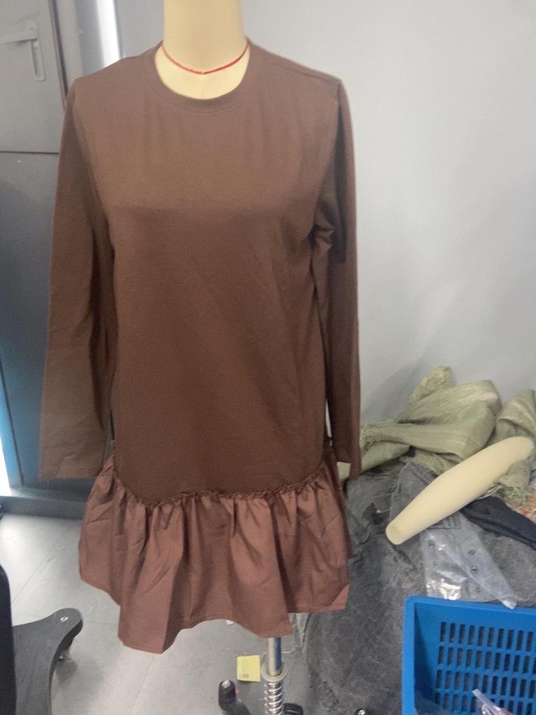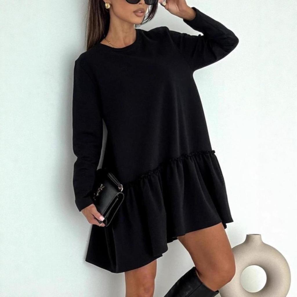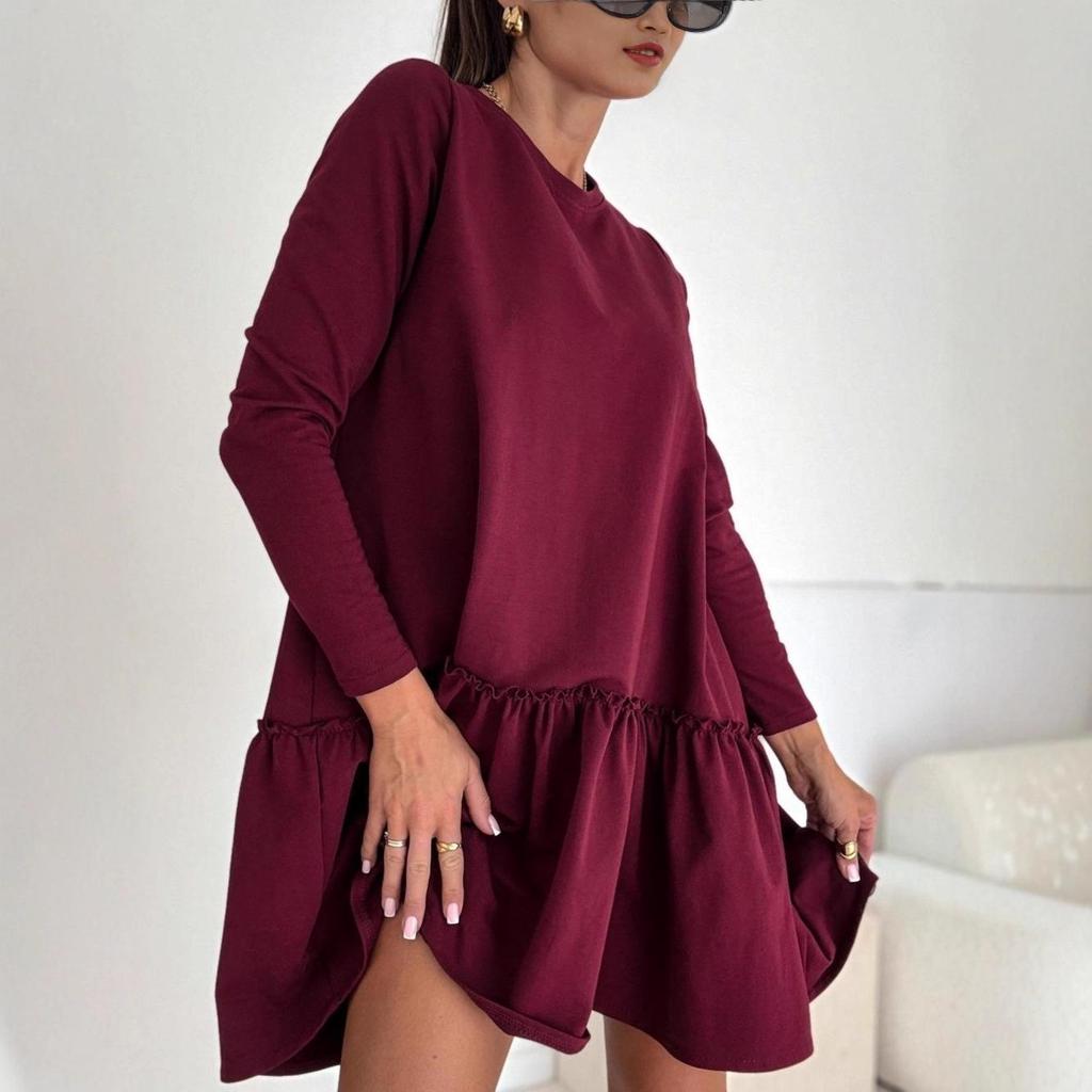 Элегантное европейское и американское плиссированное однотонное длинное платье с оборкой на круглом вырезе