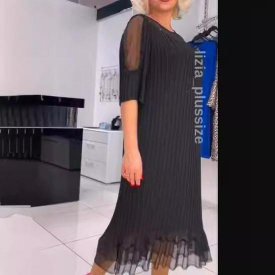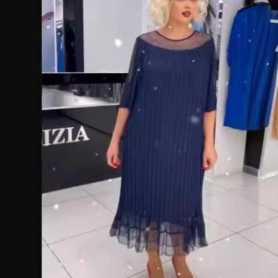 Европейское и американское женское платье миди для похудения больших размеров с рукавами пять четвертей и круглым вырезом