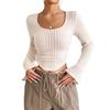 Женская футболка с квадратным вырезом, рубчик, расклешенная, с длинным рукавом, весна/лето 2024 — купить товар онлайн с бесплатной доставкой по всему миру!