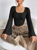 Женская футболка с квадратным вырезом, рубчик, расклешенная, с длинным рукавом, весна/лето 2024