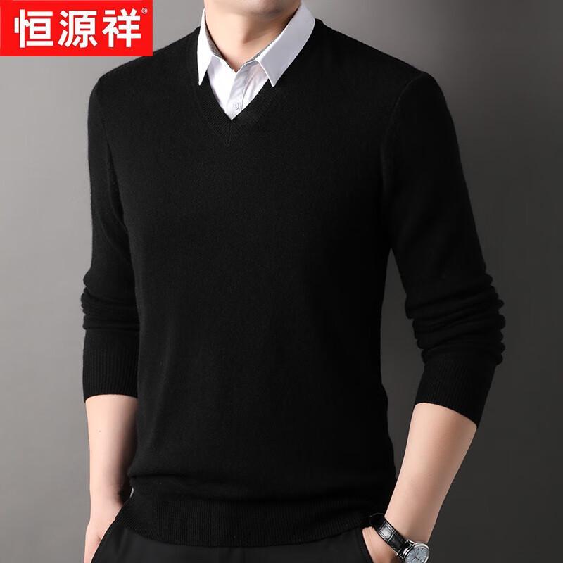 Hengyuanxiang Men's Thickened Fake Two-Piece Cashmere Sweater