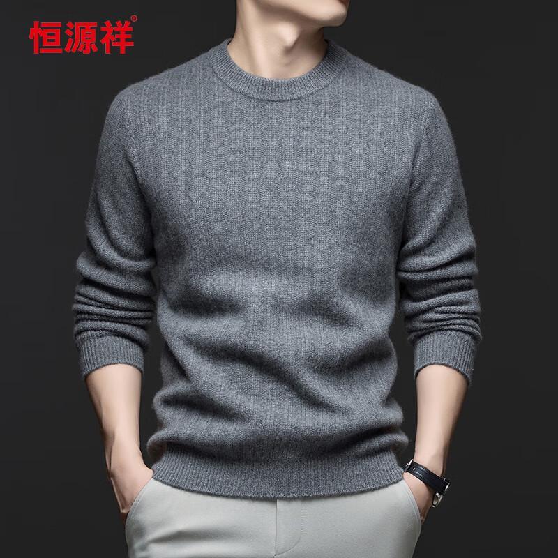 Hengyuanxiang Men's 100% Cashmere Round Neck Sweater 18177