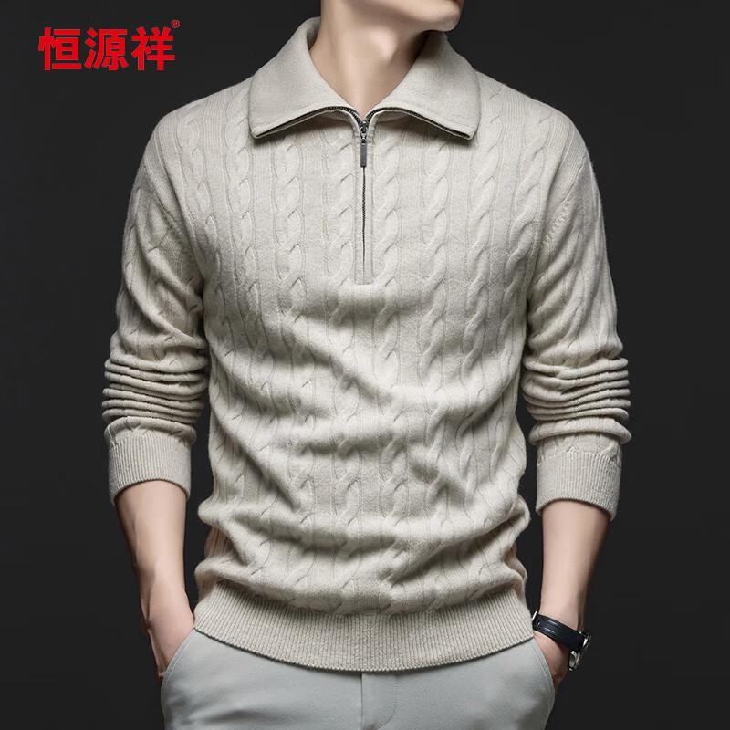 Hengyuanxiang Men's 100% Cashmere Thickened Polo Sweater
