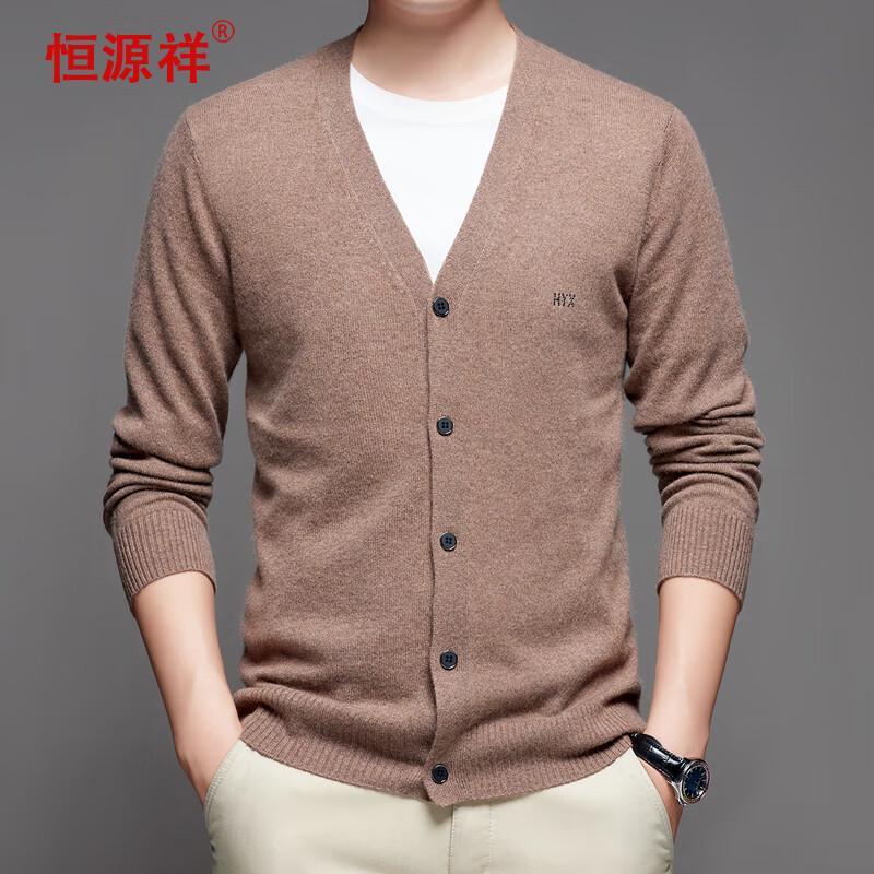 Hengyuanxiang Men's V-Neck Cashmere Cardigan