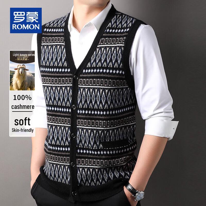 ROMON Men's 100% Pure Cashmere V-Neck Knitted Vest Cardigan