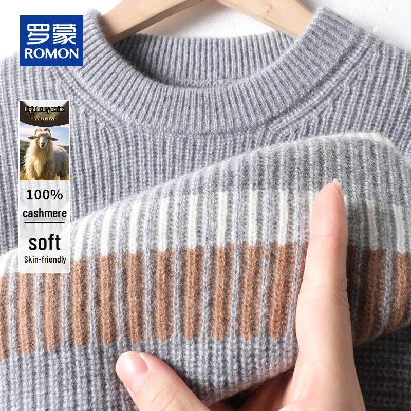 ROMON Men's 100% Cashmere Thickened Crew Neck Sweater — купить товар онлайн с бесплатной доставкой по всему миру!
