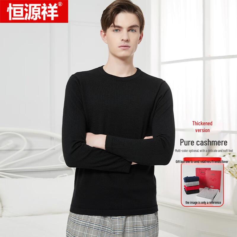 Hengyuanxiang Men's Thick Cashmere Round Neck Pullover