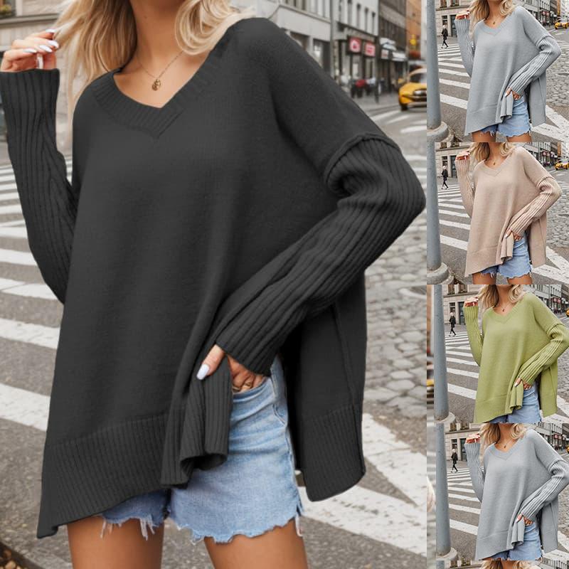 Сексуальный пуловер большого размера, вязаный свитер, женская одежда, V-образный вырез, мода