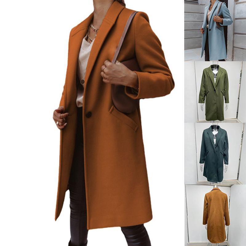 Однотонное шерстяное пальто Осень Зима средней длины Женская верхняя одежда с лацканами — купить товар онлайн с бесплатной доставкой по всему миру!