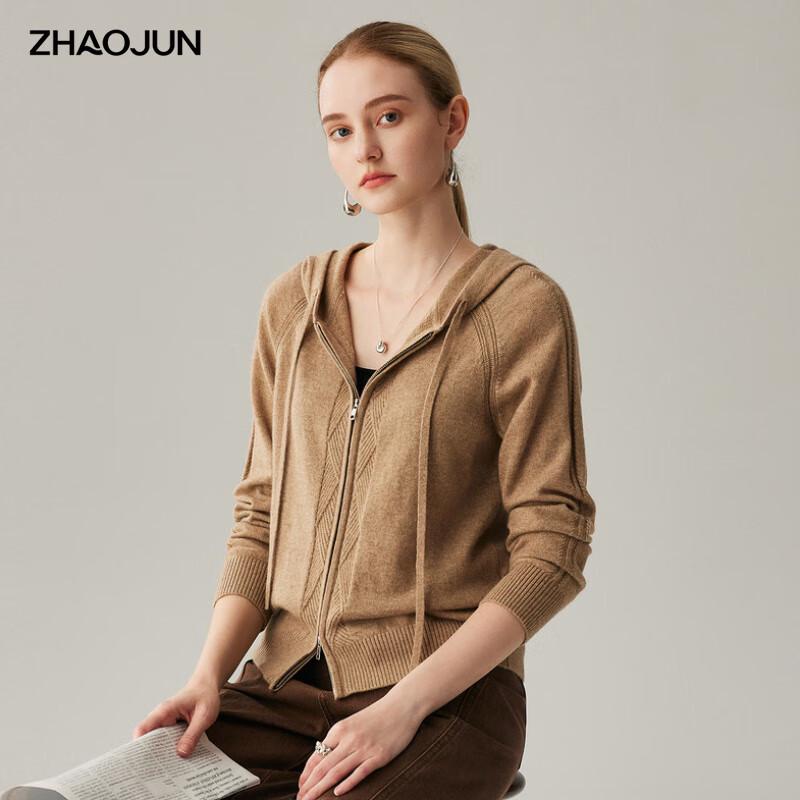 Женский кардиган Zhaojun из 100% кашемира с капюшоном и кабельной вязкой