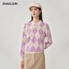 Кардиган женский кашемировый аргайл с круглым вырезом Чжаоцзюнь