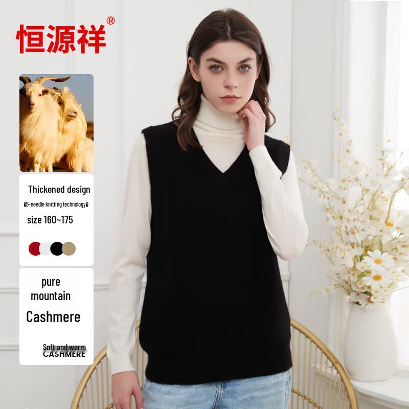 Hengyuanxiang Women's Thick Pure Cashmere V-Neck Sleeveless Vest