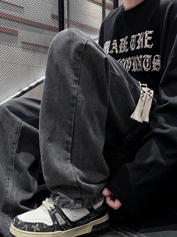 Dingfengbaoluo Men's Retro Straight Wide-Leg Casual Pants