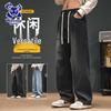 Wassup Sohot Мужские Свободные Джинсы из Вываренного Денима Прямого Кроя