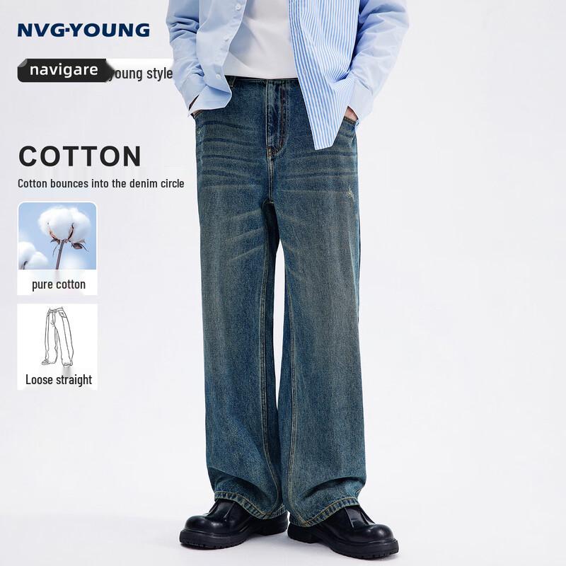 NVG.YOUNG Men's Straight-Leg Loose Fit Washed Jeans