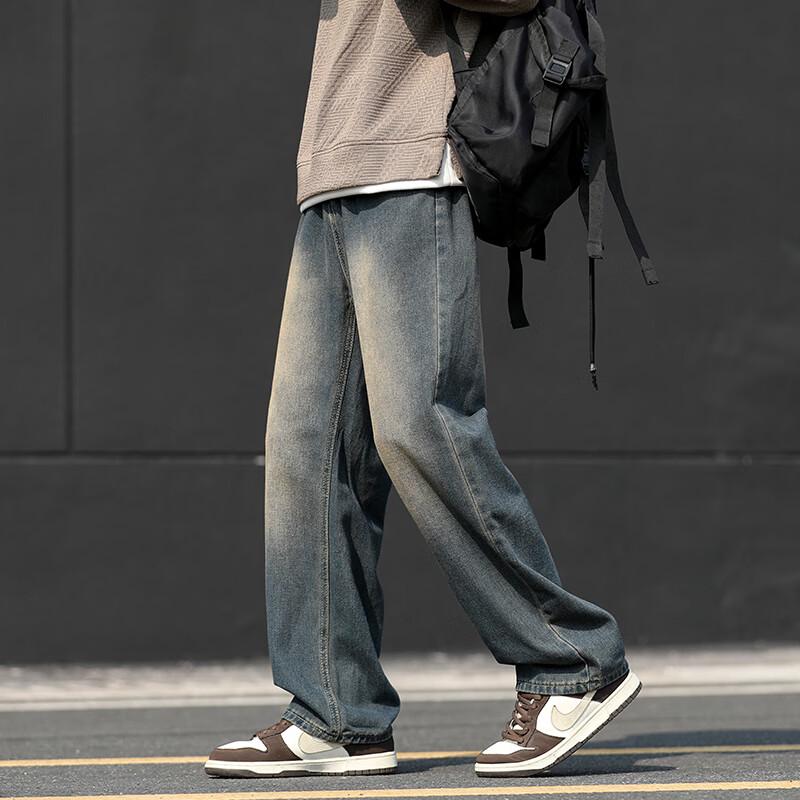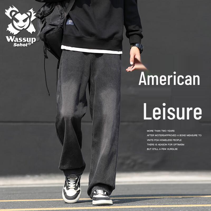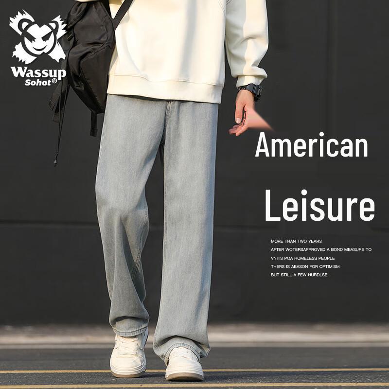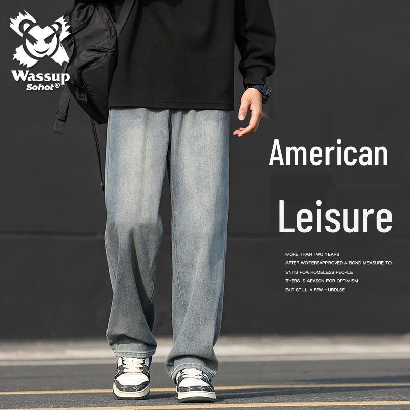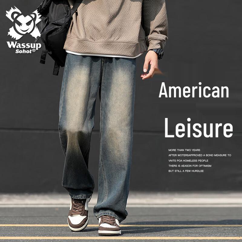 Wassup Sohot Men's American High Street Loose Straight-Leg Denim Jeans