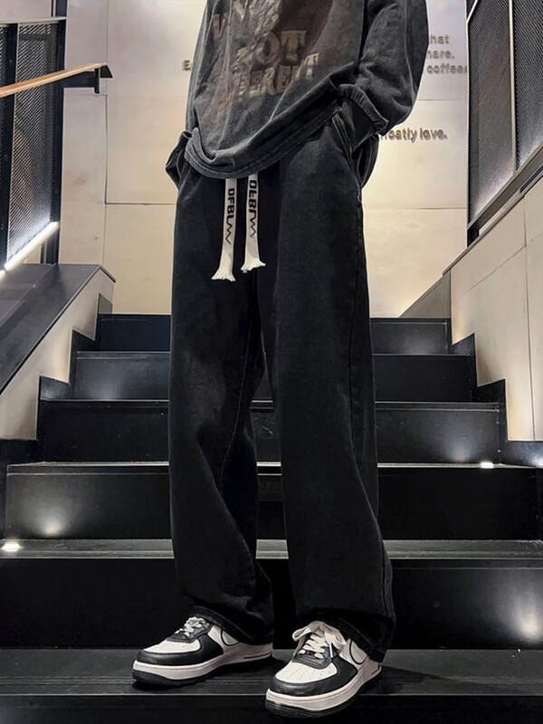 Dingfengbaoluo Retro Straight Loose Wide-Leg Casual Pants