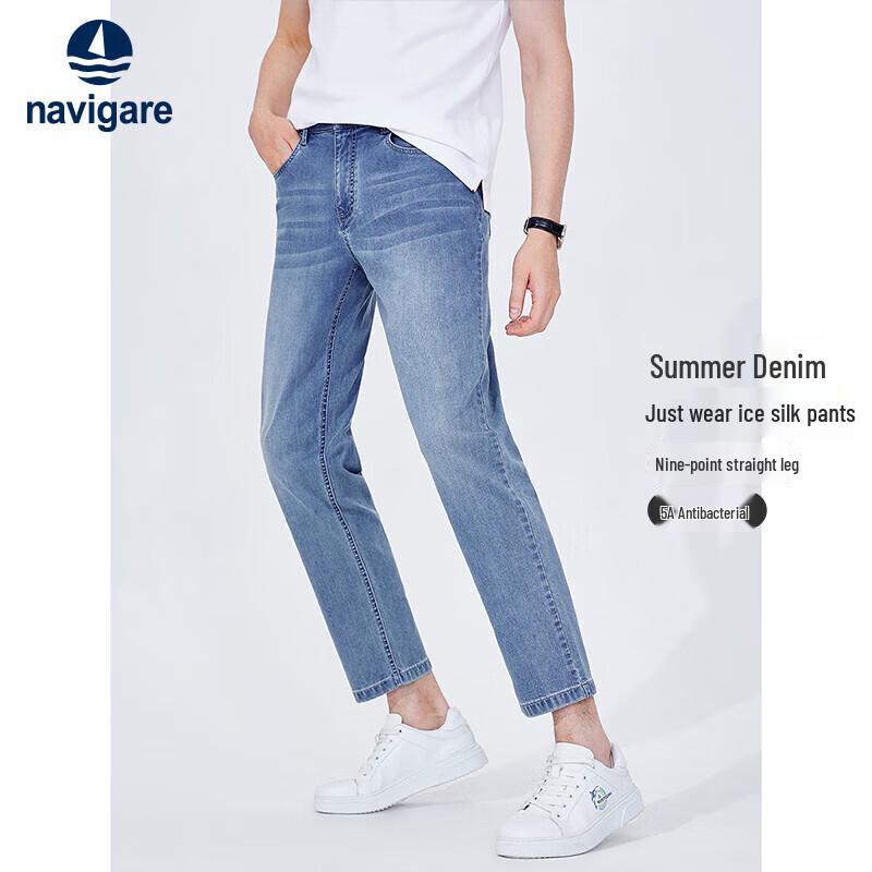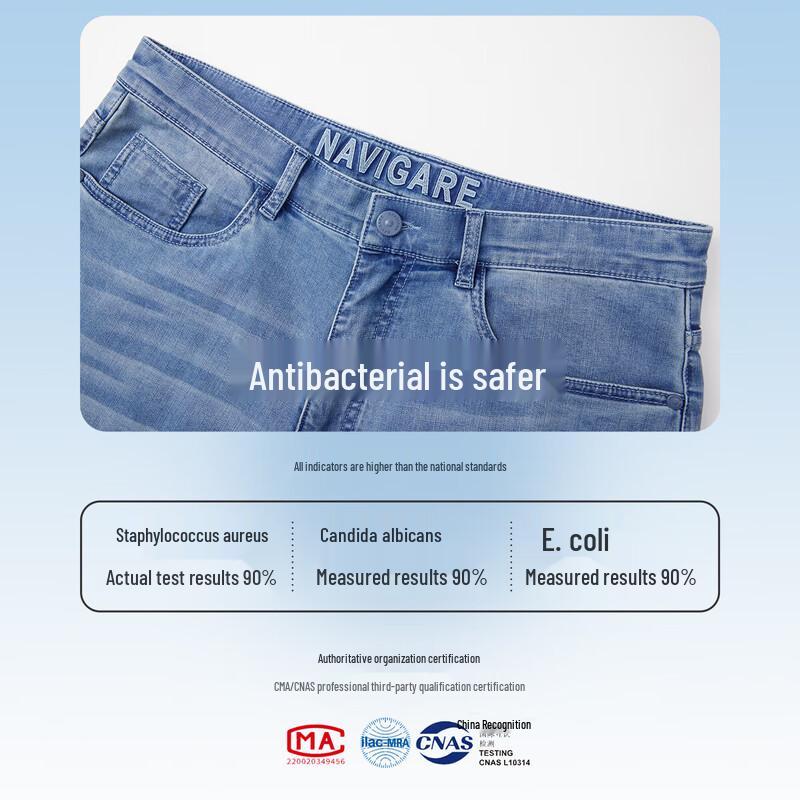 Navigare Men's Cooling Antibacterial Washed Straight-Leg Cropped Denim Jeans