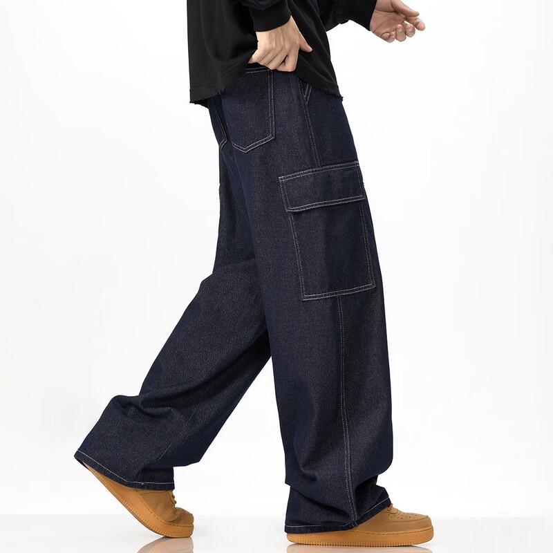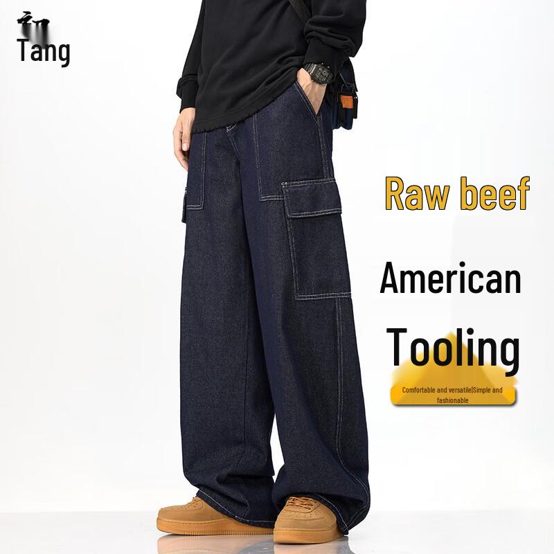 Унисекс Свободные Джинсы Рабочая Одежда Деним Широкие Штанины Множество Карманов