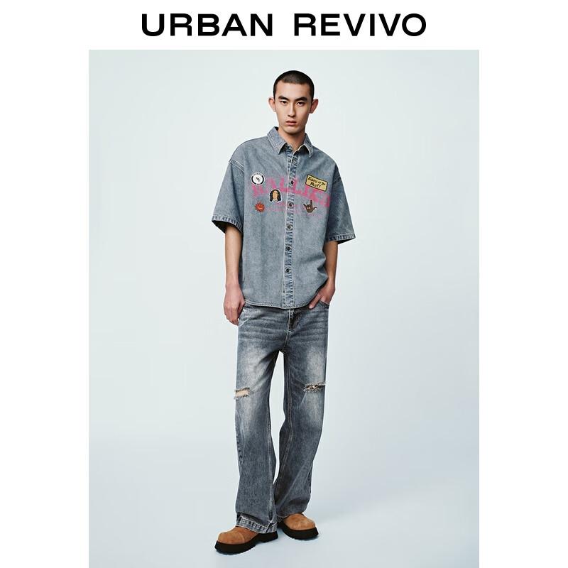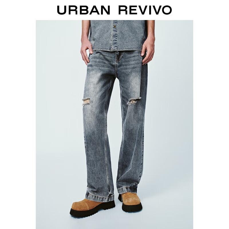 Men's Vintage Washed Distressed Wide-Leg Jeans