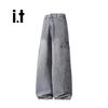 Izzue Джинсы унисекс свободного кроя с широкими прямыми штанинами в стиле рабочей одежды