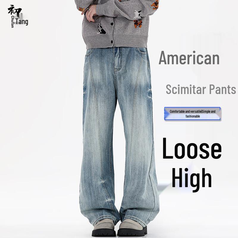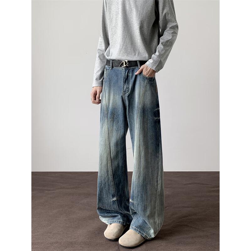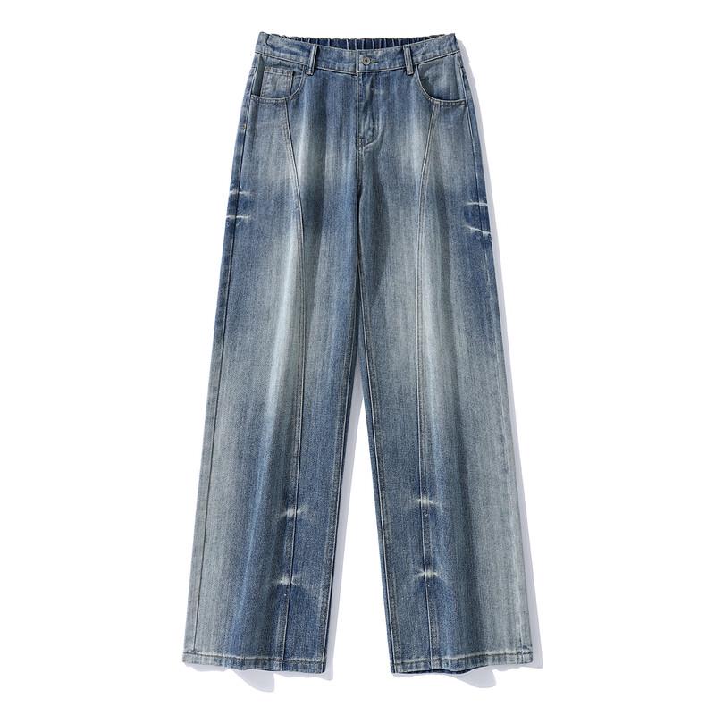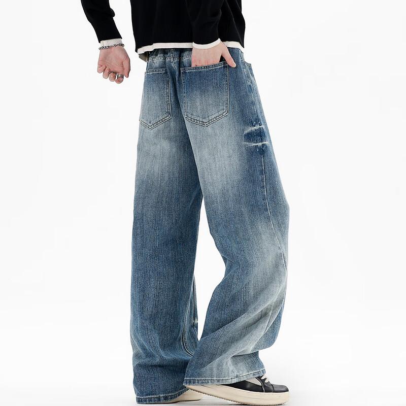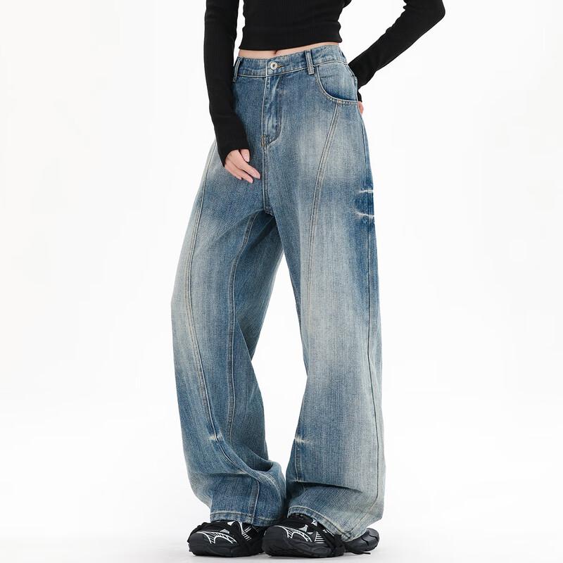Унисекс Ретро Вываренные Джинсы с Завышенной Талией Свободного Широкого Кроя